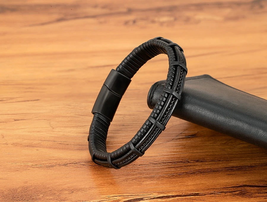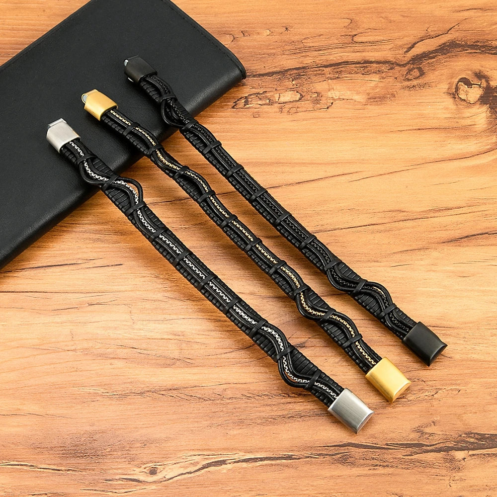 XQNI Stainless Steel Leather Bracelet Charm Jewelry Magnetic Clasp
